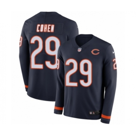 >Men's Nike Chicago Bears #29 Tarik Cohen Limited Navy Blue Therma Long Sleeve NFL Jersey