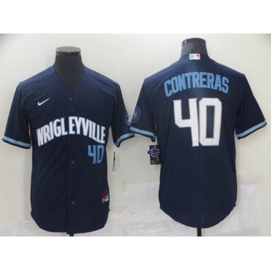 Men's Chicago Cubs #40 Willson Contreras Navy City Connect Cool Base Stitched Jersey