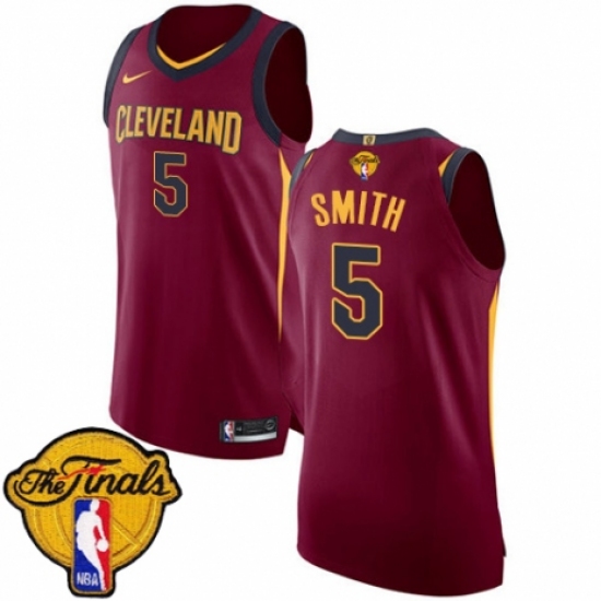 Men's Nike Cleveland Cavaliers #5 J.R. Smith Authentic Maroon 2018 NBA Finals Bound NBA Jersey - Icon Edition
