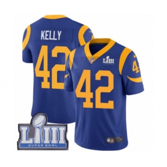 >Men's Nike Los Angeles Rams #42 John Kelly Royal Blue Alternate Vapor Untouchable Limited Player Super Bowl LIII Bound NFL Jersey