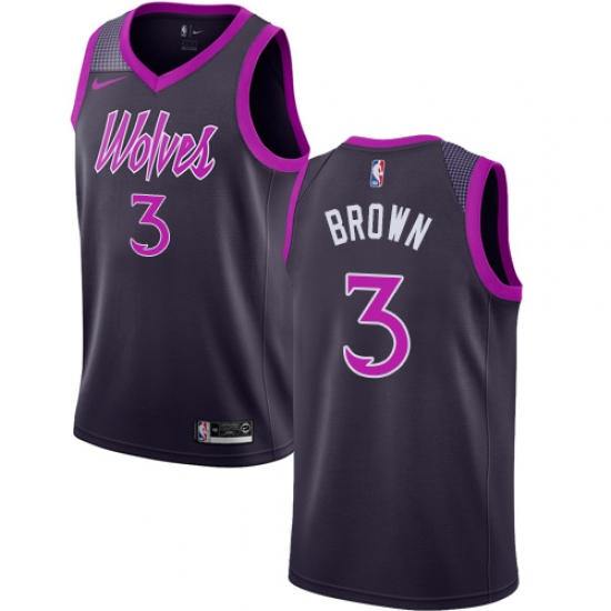 >Men's Nike Minnesota Timberwolves #3 Anthony Brown Swingman Purple NBA Jersey - City Edition