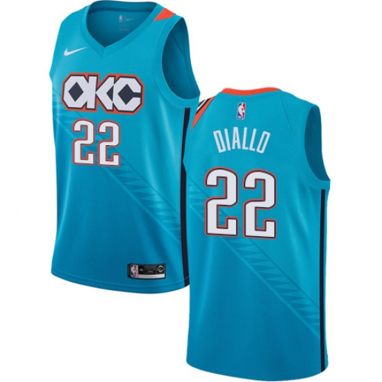 >Men's Nike Oklahoma City Thunder #22 Hamidou Diallo Swingman Turquoise NBA Jersey - City Edition