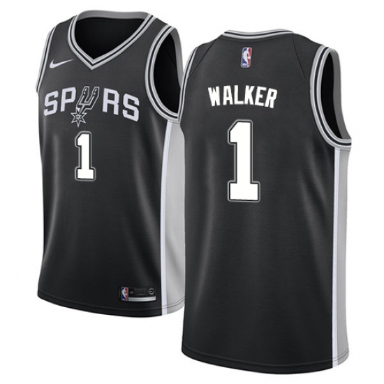 >Men's Nike San Antonio Spurs #1 Lonnie Walker Swingman Black NBA Jersey - Icon Edition