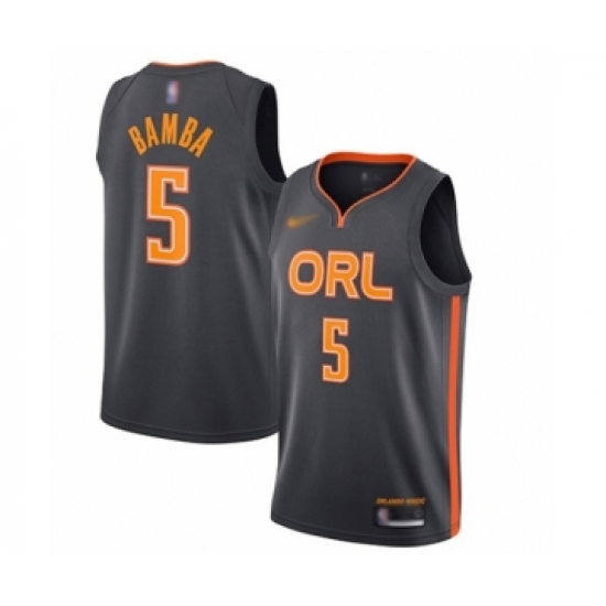>Men's Orlando Magic #5 Mohamed Bamba Swingman Charcoal Basketball Jersey - 2019 20 City Edition