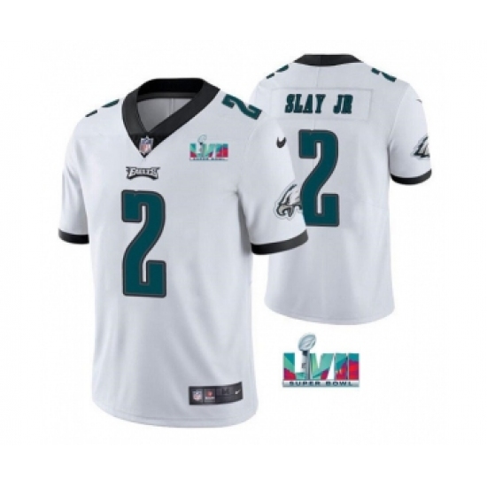 Men's Philadelphia Eagles #2 Darius Slay JR White Super Bowl LVII Patch Vapor Untouchable Limited Stitched Jersey