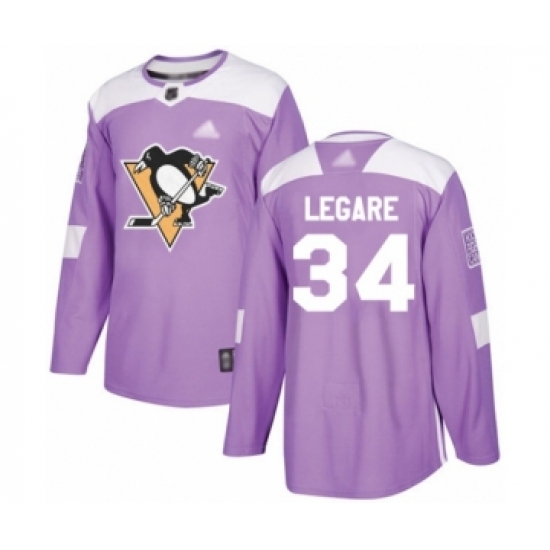 >Men's Pittsburgh Penguins #34 Nathan Legare Authentic Purple Fights Cancer Practice Hockey Jersey
