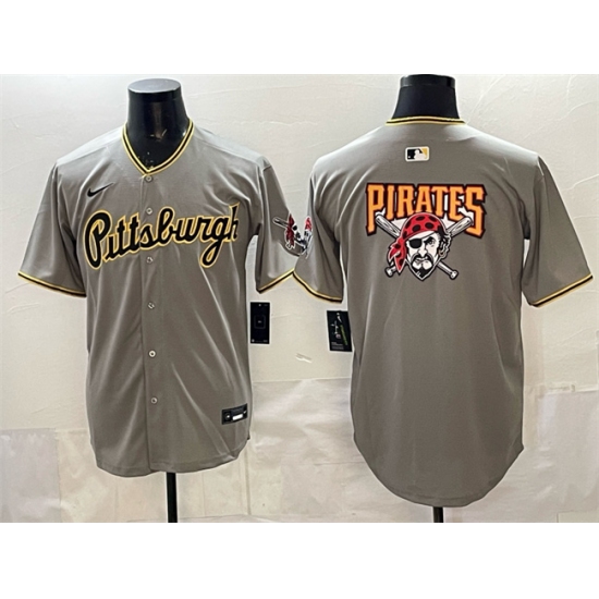 Men's Pittsburgh Pirates Team Big Logo Gray Limited Stitched Baseball Jersey