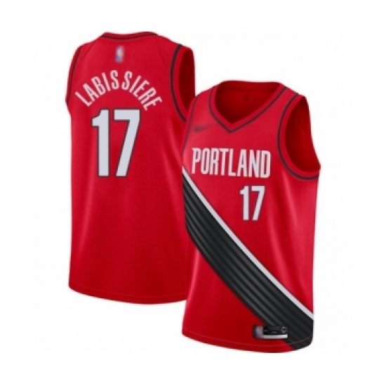 >Men's Portland Trail Blazers #17 Skal Labissiere Authentic Red Finished Basketball Jersey - Statement Edition