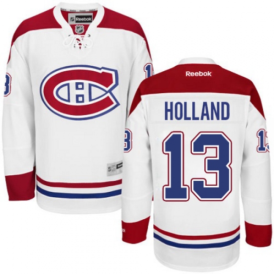 Home>NHL>Montreal Canadiens>Peter Holland>Men's Reebok Montreal Canadiens #13 Peter Holland Authentic White Away NHL Jersey