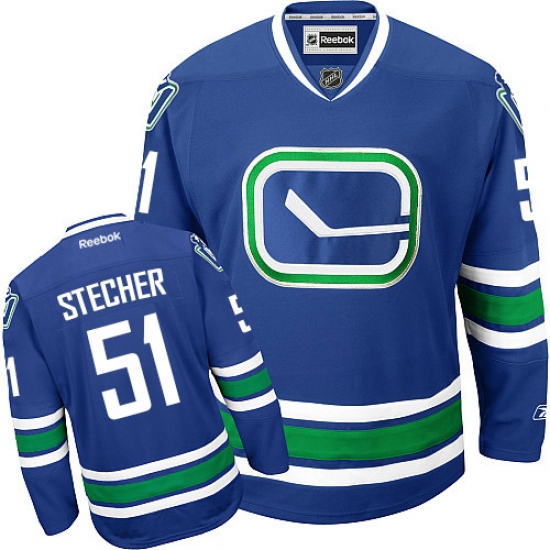 Home>NHL>Vancouver Canucks>Troy Stecher>Men's Reebok Vancouver Canucks #51 Troy Stecher Premier Royal Blue Third NHL Jersey