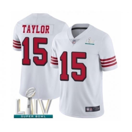 >Men's San Francisco 49ers #15 Trent Taylor Limited White Rush Vapor Untouchable Super Bowl LIV Bound Football Jersey