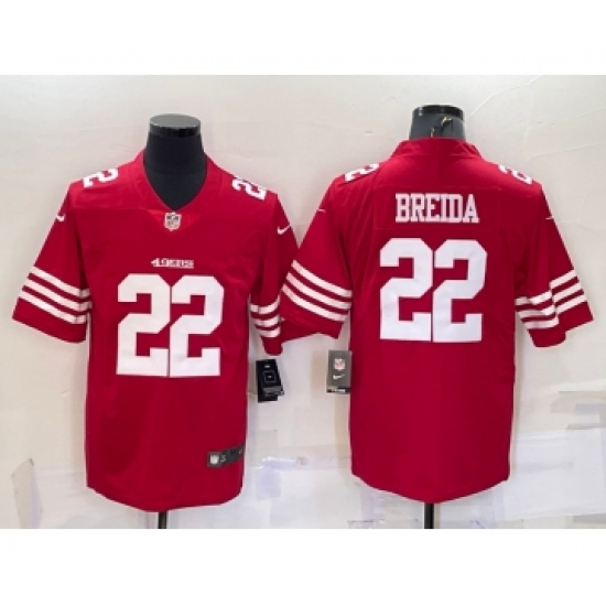 >Men's San Francisco 49ers #22 Matt Breida 2022 New Red Vapor Untouchable Stitched Jersey