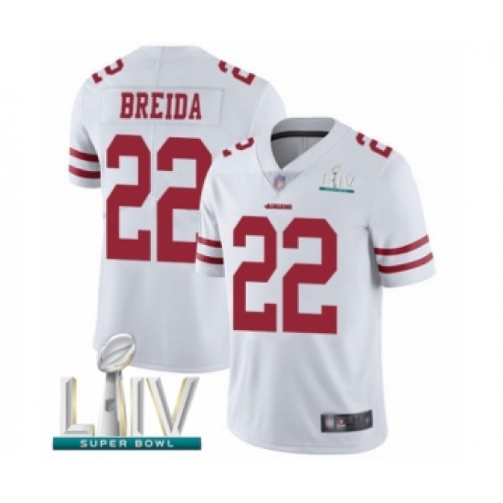Men's San Francisco 49ers #22 Matt Breida White Vapor Untouchable Limited Player Super Bowl LIV Bound Football Jersey