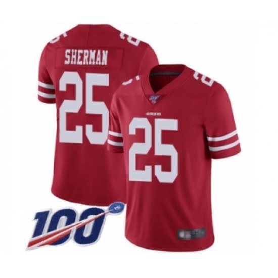 Men's San Francisco 49ers #25 Richard Sherman Red Team Color Vapor Untouchable Limited Player 100th Season Football Jersey