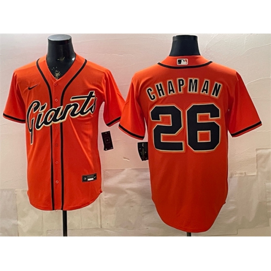 >Men's San Francisco Giants #26 Matt Chapman Orange Cool Base Stitched Baseball Jersey