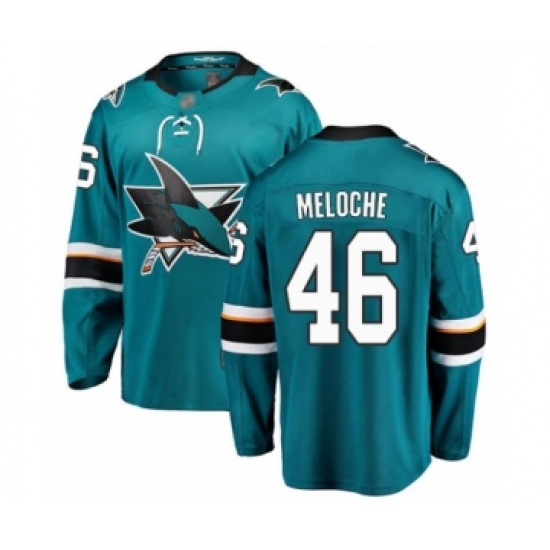 >Men's San Jose Sharks #46 Nicolas Meloche Fanatics Branded Teal Green Home Breakaway Hockey Jersey