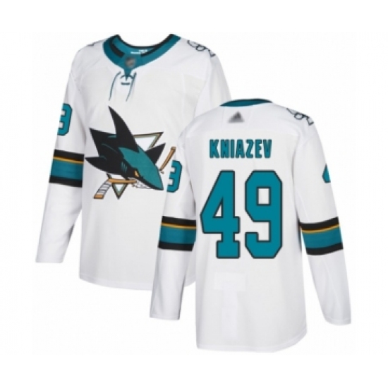 Men's San Jose Sharks #49 Artemi Kniazev Authentic White Away Hockey Jersey