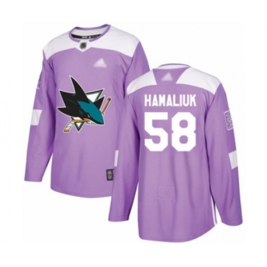 >Men's San Jose Sharks #58 Dillon Hamaliuk Authentic Purple Fights Cancer Practice Hockey Jersey