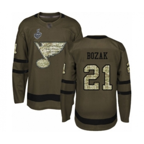 Men's St. Louis Blues #21 Tyler Bozak Authentic Green Salute to Service 2019 Stanley Cup Final Bound Hockey Jersey