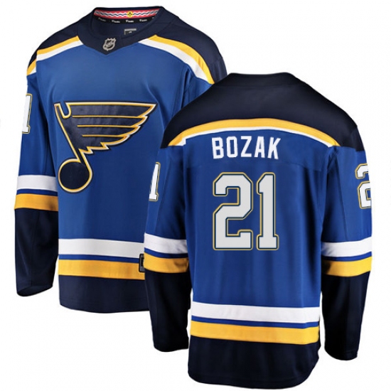 Men's St. Louis Blues #21 Tyler Bozak Fanatics Branded Royal Blue Home Breakaway NHL Jersey