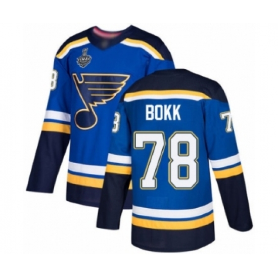 >Men's St. Louis Blues #78 Dominik Bokk Authentic Royal Blue Home 2019 Stanley Cup Final Bound Hockey Jersey