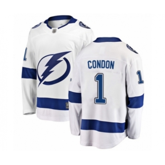 Men's Tampa Bay Lightning #1 Mike Condon Fanatics Branded White Away Breakaway Hockey Jersey