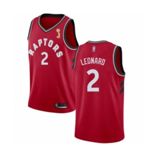>Men's Toronto Raptors #2 Kawhi Leonard Swingman Red 2019 Basketball Finals Champions Jersey - Icon Edition