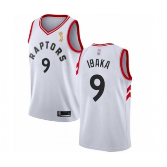 >Men's Toronto Raptors #9 Serge Ibaka Swingman White 2019 Basketball Finals Champions Jersey - Association Edition