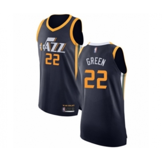 >Men's Utah Jazz #22 Jeff Green Authentic Navy Blue Basketball Jersey - Icon Edition