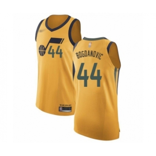 >Men's Utah Jazz #44 Bojan Bogdanovic Authentic Gold Basketball Jersey Statement Edition