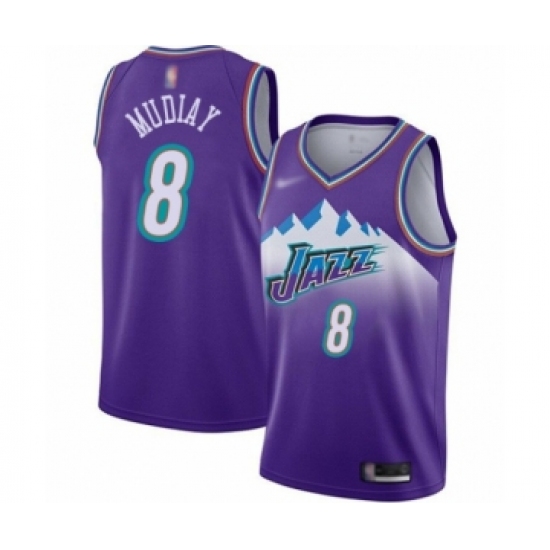 >Men's Utah Jazz #8 Emmanuel Mudiay Authentic Purple Hardwood Classics Basketball Jersey