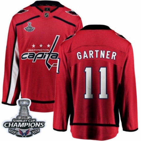 Men's Washington Capitals #11 Mike Gartner Fanatics Branded Red Home Breakaway 2018 Stanley Cup Final Champions NHL Jersey