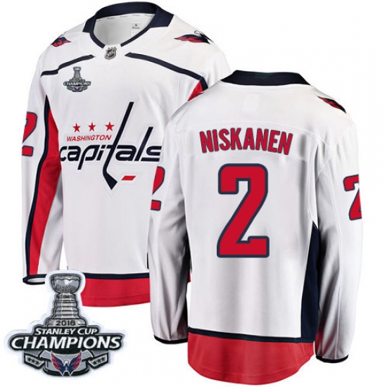 >Men's Washington Capitals #2 Matt Niskanen Fanatics Branded White Away Breakaway 2018 Stanley Cup Final Champions NHL Jersey