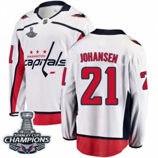 Men's Washington Capitals #21 Lucas Johansen Fanatics Branded White Away Breakaway 2018 Stanley Cup Final Champions NHL Jersey