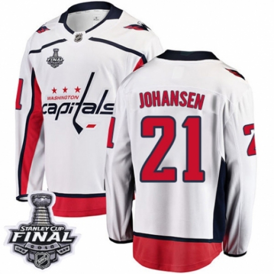 Men's Washington Capitals #21 Lucas Johansen Fanatics Branded White Away Breakaway 2018 Stanley Cup Final NHL Jersey