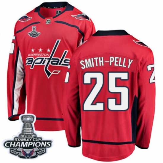 >Men's Washington Capitals #25 Devante Smith-Pelly Fanatics Branded Red Home Breakaway 2018 Stanley Cup Final Champions NHL Jersey