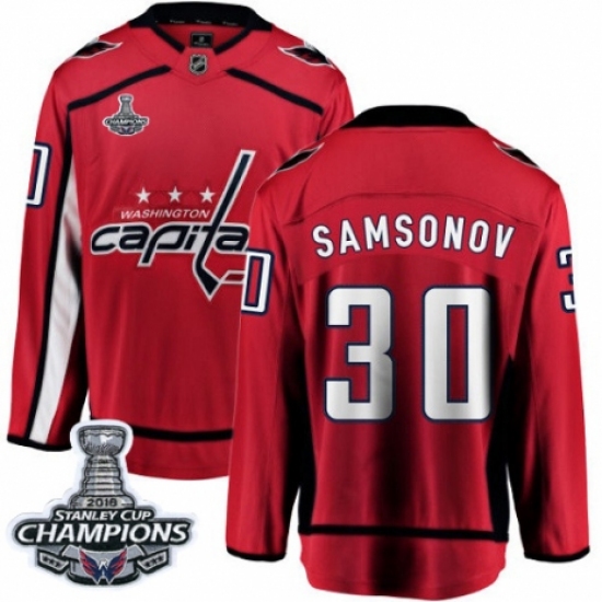 Men's Washington Capitals #30 Ilya Samsonov Fanatics Branded Red Home Breakaway 2018 Stanley Cup Final Champions NHL Jersey