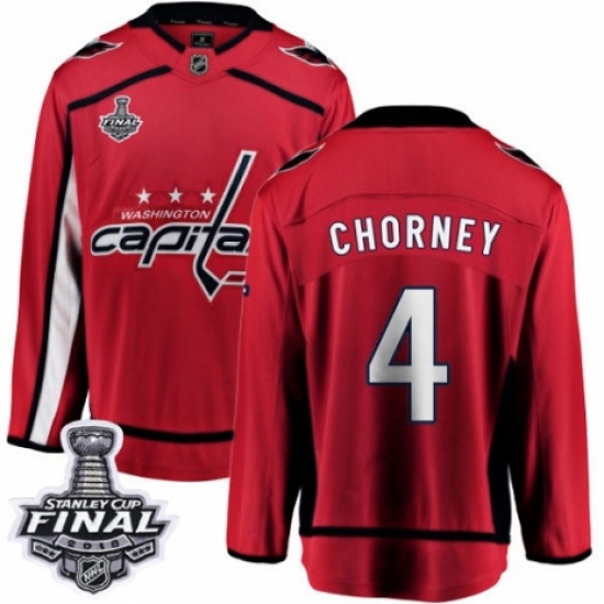 Men's Washington Capitals #4 Taylor Chorney Fanatics Branded Red Home Breakaway 2018 Stanley Cup Final NHL Jersey