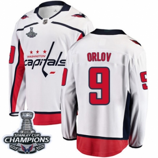 Men's Washington Capitals #9 Dmitry Orlov Fanatics Branded White Away Breakaway 2018 Stanley Cup Final Champions NHL Jersey
