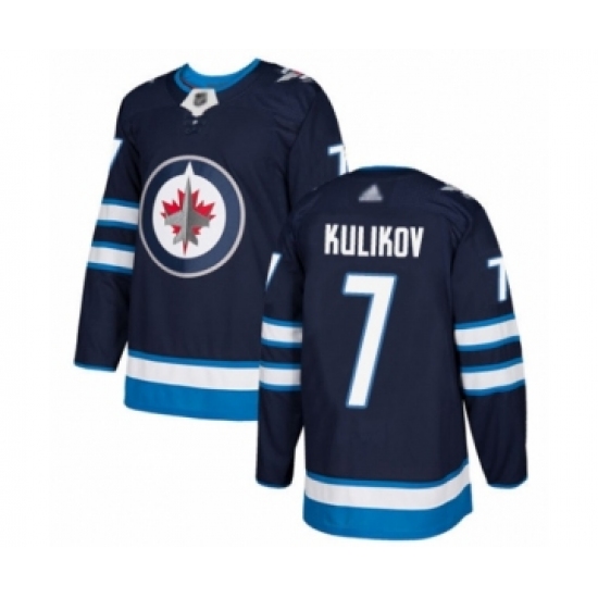 >Men's Winnipeg Jets #7 Dmitry Kulikov Authentic Navy Blue Home Hockey Jersey