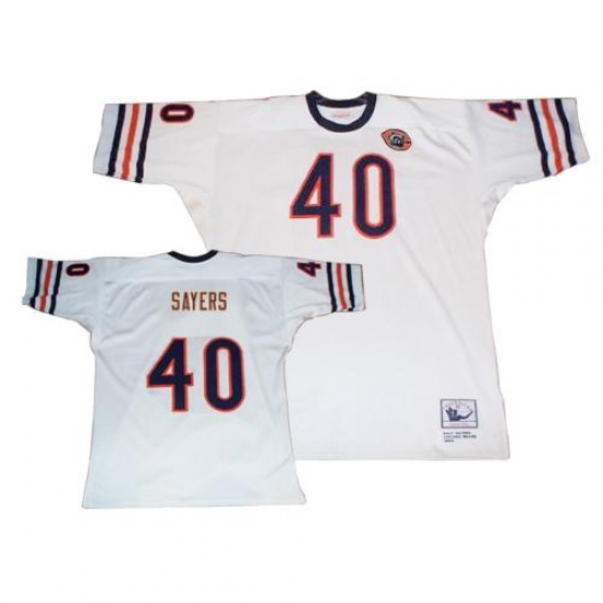 Feel like part of your favorite team by wearing this NFL® Mitchell And Ness Chicago Bears #40 Gale Sayers Authentic Jersey White Big Number with Bear Patch Authentic Throwback NFL Jersey, made of thick, high-quality Pro-Brite fabric for a genuine gridiron look. The players number which 100% stitched is displayed in tackle twill on the chest, back and sleeves, along with the team name on the front. The players name which 100% stitched is displayed on a sewn-down nameplate at the back. 100% Pro-Brite nylon and 100% Pro-Brite polyester for body, 100% lycratalic spandex dazzle for Side Panels/Collar/Cuffs, NFL® Equipment patch sewn on the bottom of the front collar or fabric insert, NFL® Equipment jock tag with numeric sizing is applied to the lower left bottom of the jersey, Officially licensed
