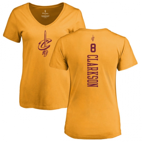 Home>NBA>Cleveland Cavaliers>Jordan Clarkson>NBA Women's Nike Cleveland Cavaliers #8 Jordan Clarkson Gold One Color Backer Slim-Fit V-Neck T-Shirt