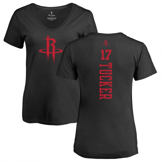 NBA Women's Nike Houston Rockets #17 PJ Tucker Black One Color Backer Slim-Fit V-Neck T-Shirt