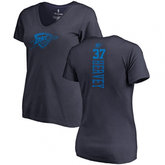 >NBA Women's Nike Oklahoma City Thunder #37 Kevin Hervey Navy Blue One Color Backer Slim-Fit V-Neck T-Shirt