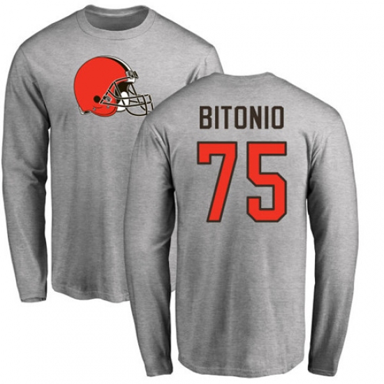 NFL Nike Cleveland Browns #75 Joel Bitonio Ash Name & Number Logo Long Sleeve T-Shirt