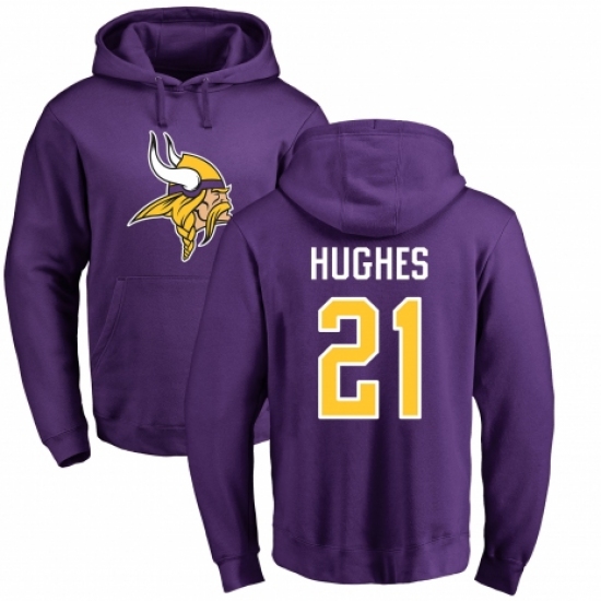 NFL Nike Minnesota Vikings #21 Mike Hughes Purple Name & Number Logo Pullover Hoodie