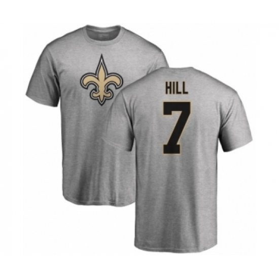 >NFL Nike New Orleans Saints #7 Taysom Hill Ash Name & Number Logo T-Shirt