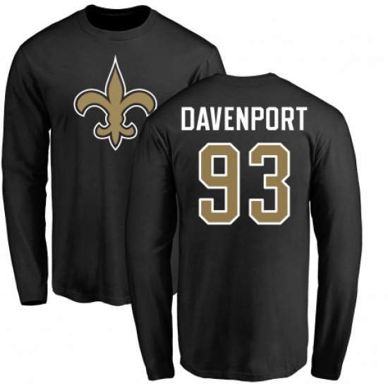>NFL Nike New Orleans Saints #93 Marcus Davenport Black Name & Number Logo Long Sleeve T-Shirt