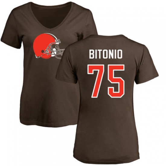 >NFL Women's Nike Cleveland Browns #75 Joel Bitonio Brown Name & Number Logo T-Shirt