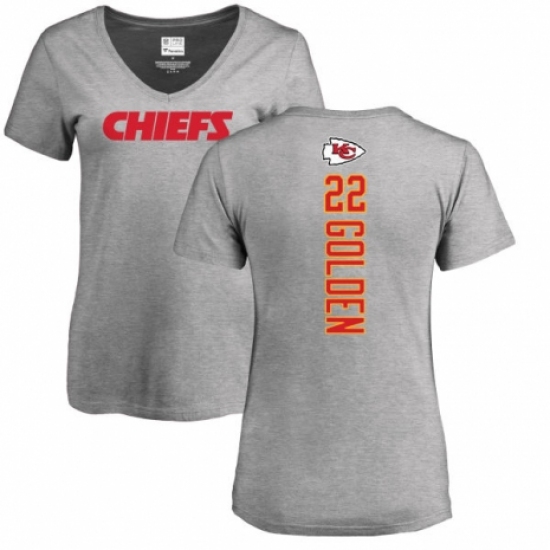 >NFL Women's Nike Kansas City Chiefs #22 Robert Golden Ash Backer V-Neck T-Shirt